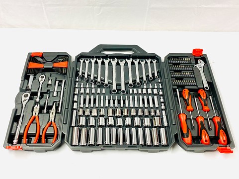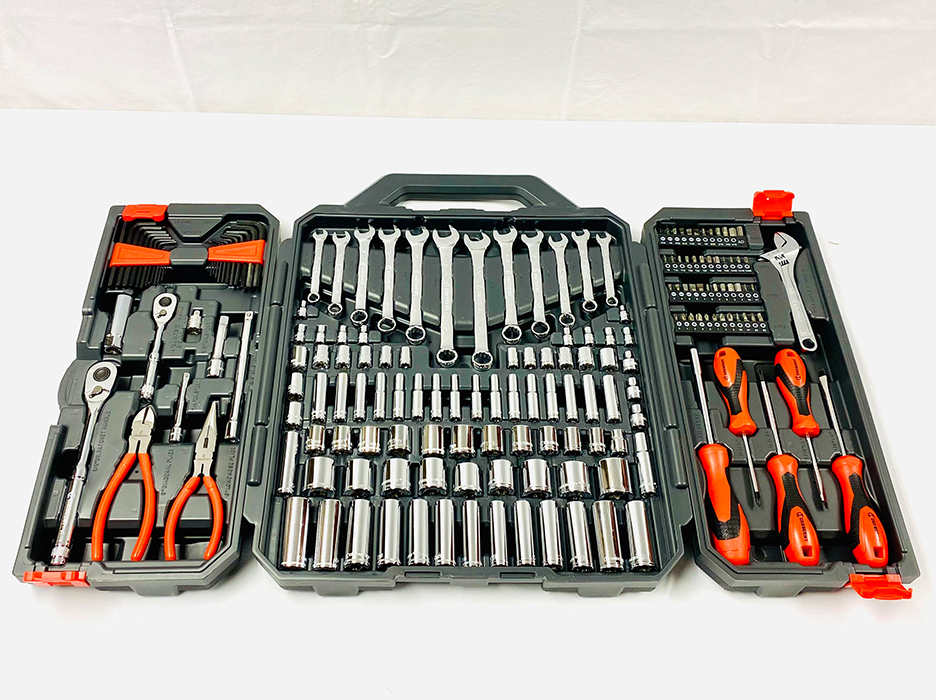 Includes wrenches, sockets, screw drivers, pliers and more.