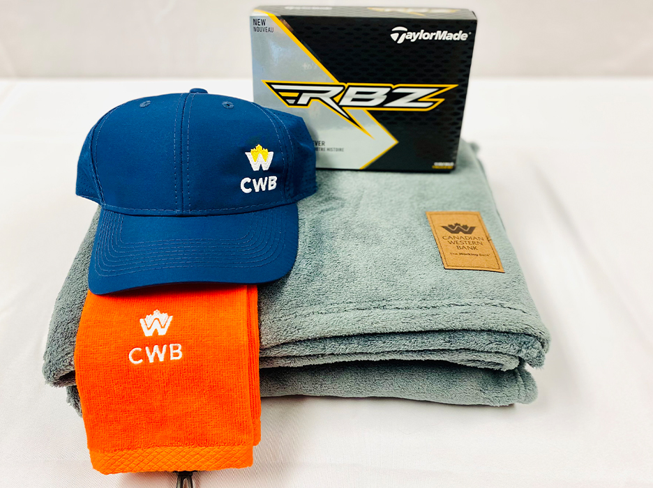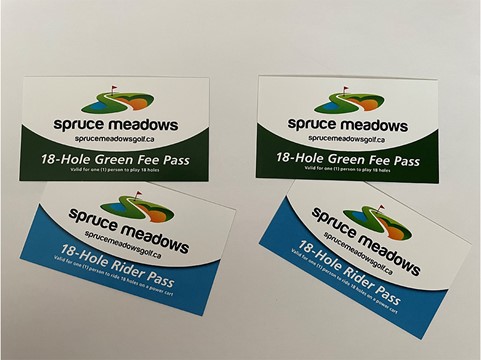 Includes, a dozen golf balls, golf ball towel, cap and 2 passes for Spruce Meadows.