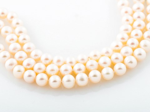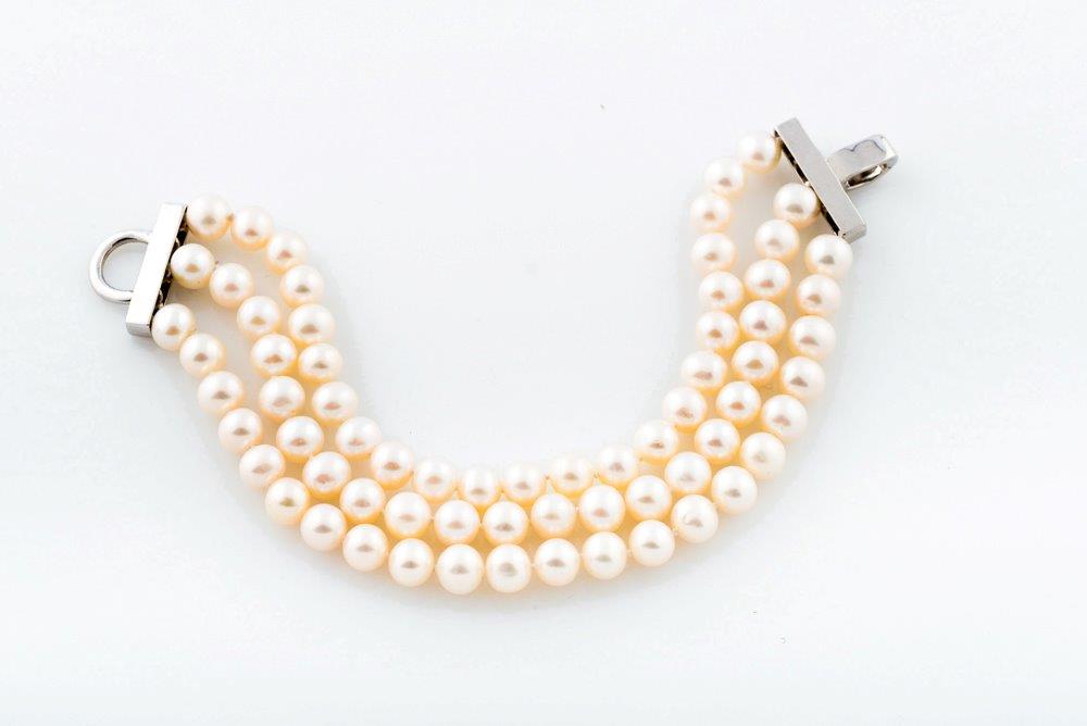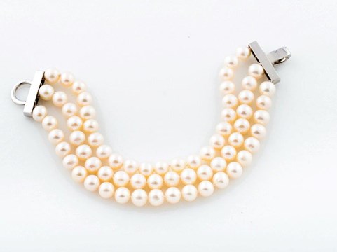 8.00 Freshwater Cultured Pearl triple strand 7mm - 8mm bracelet with stainless steel clasp.
