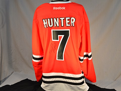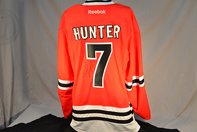 NHL jersey signed by Trent Hunter. Trent is a Red Deer Native, this right winger has played for the New York Islanders and the Los Angeles Kings. This talented local has produced 236 points during his NHL carreer, and won the Allan Cup with the Bentley Generals during the 2012-2013 season.