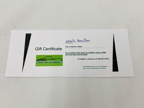 $500 to a scratch or dent repair or $500 value in other repair services.