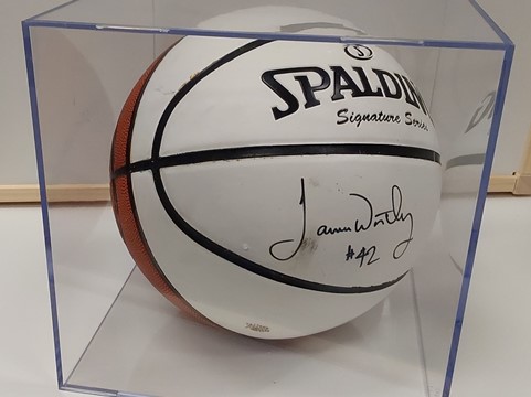 Own a bit of history by purchasing this NBA legends Spalding Signature Series Basketball signed by James Worthy. This ball comes displayed in a Ball Qube for safekeeping.