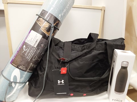 This basket is great for anyone looking to get there mind and or body in shape for the season. This basket comes with an Under Armour Black Duffle bag (31L), Energentics PVC free Yoga / Pilates Mat with strap, Way of Will Tea Tree and Lavender Yoga mat spray, Everlast Power band, Manduka Equa Yoga Towel and H2GO Force water bottle. A great item for yourself and someone you love.