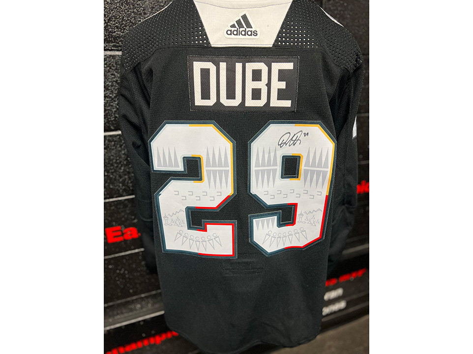 The autographed Indigenous Celebration Night practice jerseys are authentic on-ice jerseys engineered by ADIDAS to the exact specifications of the National Hockey League. The jersey is made in Canada and the material is 100% polyester. The jersey features an authentic tie down strap and player name and number on the back and sleeves. The logos and pattern inside the numbers were designed by a local Indigenous artist. The logo tells the story of the Indigenous community in Treaty 7 Territory, the blasty logo is used to honour tradition, the organization and it’s loyal fanbase. He has a circle around his eye for keen vision, and stripes added to symbolize great achievements. The eagle feather often represents the culture and our connection to history. Indigenous communities use them to honour great achievements or in this case milestones. The talks of reconciliation also coincide with change, therefore the ¬flames in the tips of the feathers are used to represent that “spark” of change in a forward moving direction. The overall design is intended to be representative of the people and to share that connection and history of their relationship with the land. This jersey is exclusive to this auction only and are not available for purchase through any other outlet.