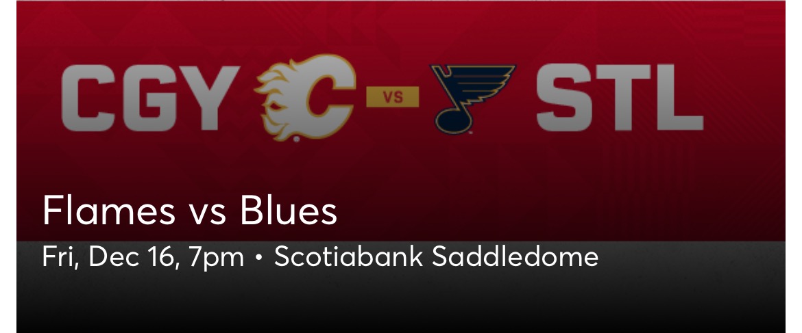 Enjoy a night out on the town cheering our our Calgary Flames. Two Calgary Flames Tickets for the December 16th, 2022 game versus the St. Louis Blues. These seats are located in Section 116 Row 11 Seat 11 & 12