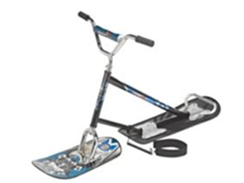 X-Games Snow MX Sled is a cross between a BMX bike and a snowboard, with improved design. Includes a kick bar for tricks, boot grip pad, coiled leash with safety strap and metal edges
