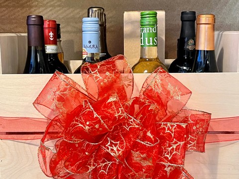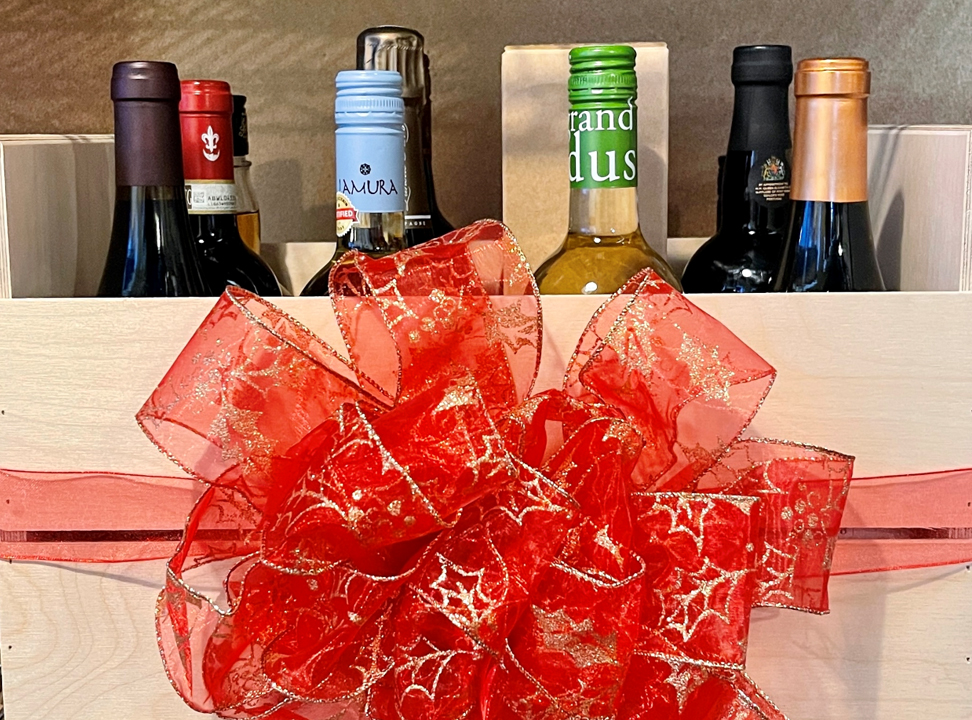 We’ve included all the adult beverages you will need to survive the Holiday Season in a 12-bottle crate with a bow on it: