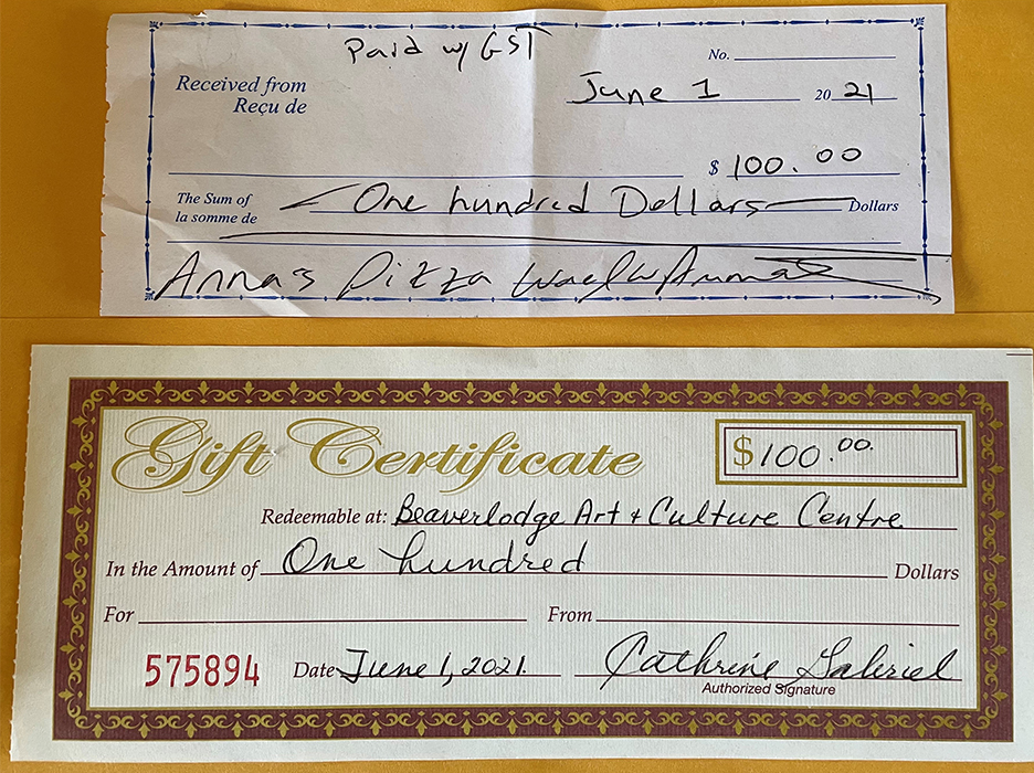2 x $100 Gift Cards - Anna's Pizza & Beaverlodge Art & Cultural Centre