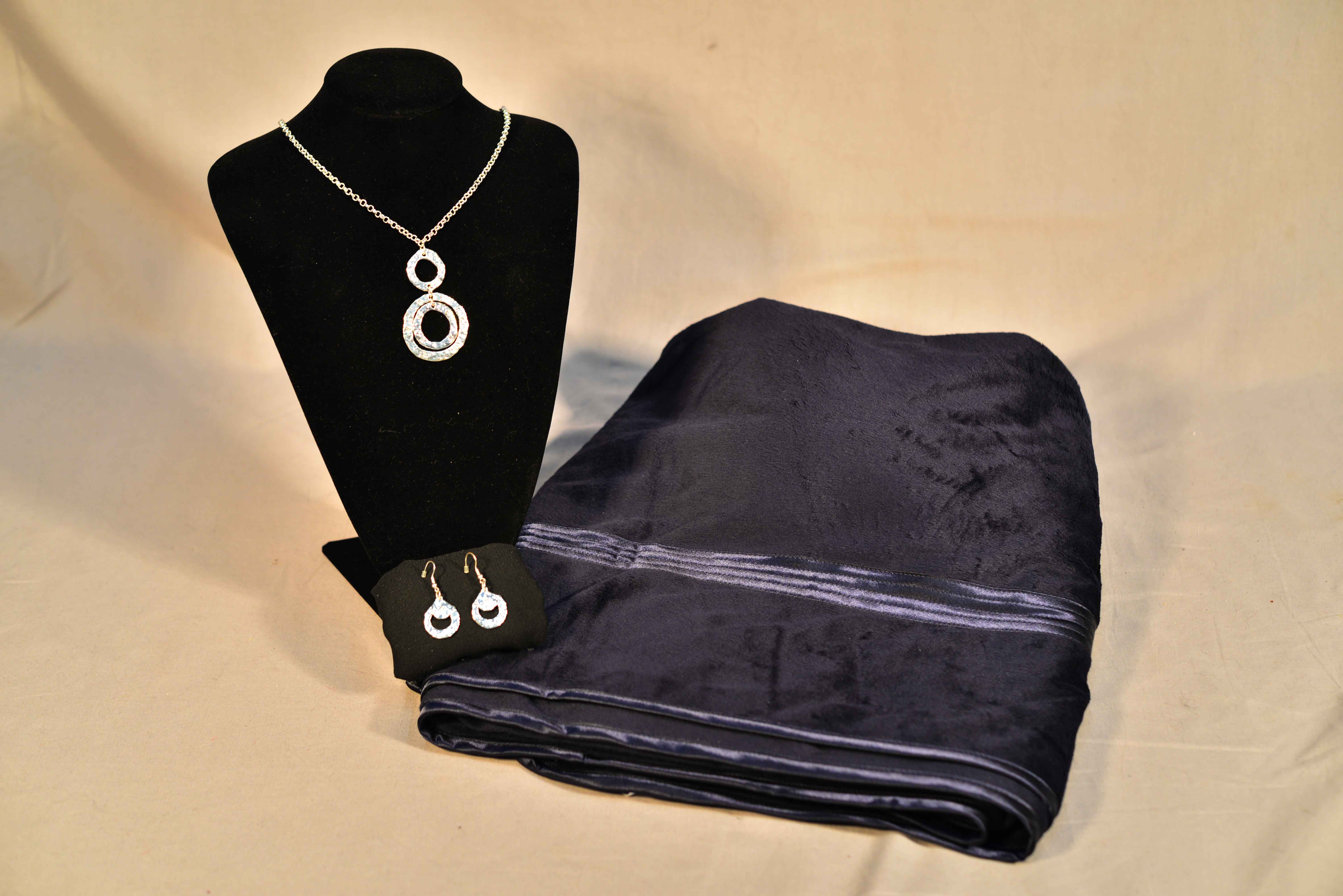 P2P jewelry including necklace and earring set with hammered metal with clear stones; coordinate this set with any ensemble from business casual to everyday wear and you will sure to be complemented on the antique allure of this treasured piece.